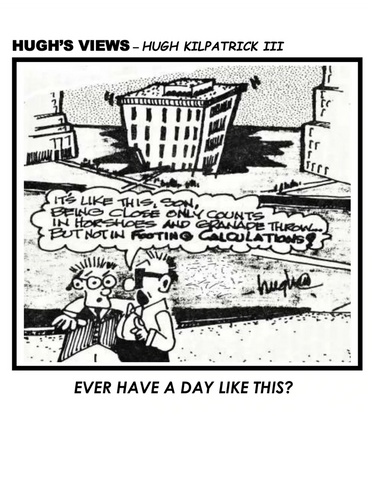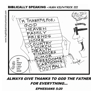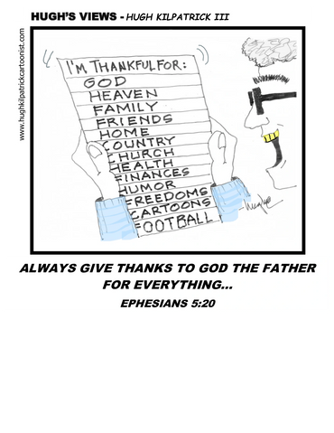 Hello...my name is Hugh Kilpatrick III. This is a little about my story... I recently hung up my T-Square in my architectural office after 52 years. I then pulled out my roll of tracing paper and sharpened my leaded pencil to follow my dream....cartooning. My goal is to give glory to Jesus Christ, my Savior, by using my God-given talents through my artwork. I desire to make people smile, and hopefully laugh, as I view life's situations and popular biblical stories from a humorous point of view...thus the name of my cartoon panels, "HUGH'S VIEWS" and "BIBLICALLY SPEAKING". Hope you will enjoy my work as you peruse this website.